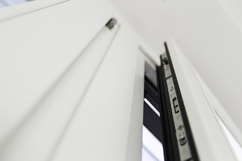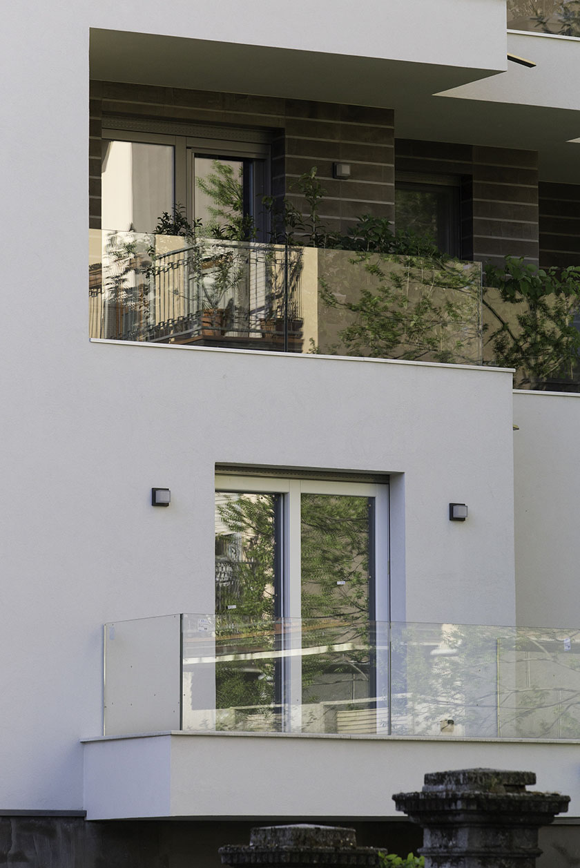 New building near the city center; BERG80 windows, French doors and sliding “Panoramico” with soft glazing bead, triple glazing, lacquered white, Maico hinges.